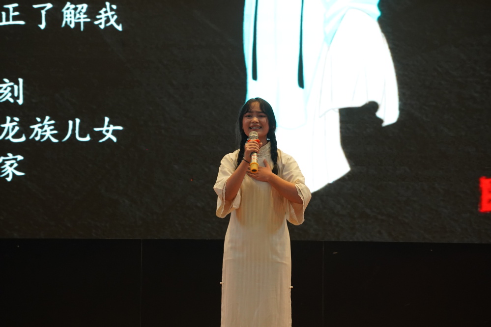在朗诵组声情并茂的诗词朗诵中,我们为李白的旷达豪迈而感慨,为我们阔远的大好河山而自豪,为那声声“祖国我爱你”而热泪盈眶。