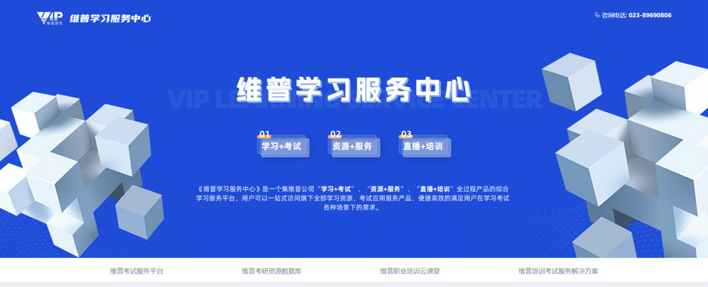 该中心是维普品牌下学习类、考试类产品的一站式使用主门户,目前集合了公司“学习+考试”、“资源+服务”五大产品,包括:《维普考试服务平台》、《维普考研资源数据库》、《维普职业培训云课堂》、《维普医学考试服务平台》、《维普培训考试服务平台》。用户可以根据自身学习需求,在此中心便捷地访问任一产品及服务的子模块,进行更专业更全面的学习,助推更高效的过程化学习与培训。