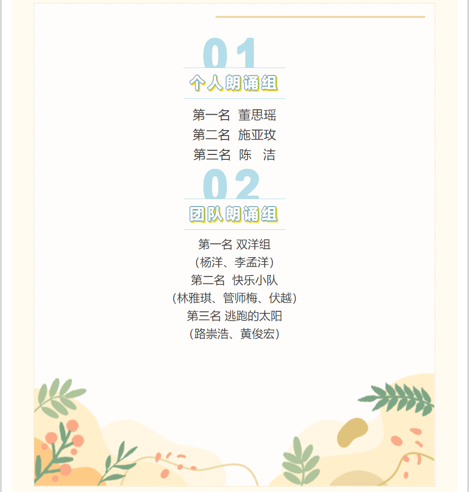 时至今日,诗词大赛圆满落幕。在这期间,选手们用一首首的诗词歌赋,让我们感受到了炎黄子孙的家国情怀。所有的参赛选手,感谢你们来到我们的赛场,用你们最美好的青春年华,用你们的才情和学识装扮了我们的舞台,也传播了最美的中国诗词文化,在这里向你们表达最诚挚的感谢。以下是在此次比赛中获奖的人员: